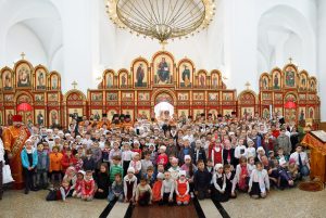 Концерт открыл детский хор Вознесенского кафедрального собора, который возник в начале 90-х годов и получил большую поддержку, когда Новосибирской кафедрой управлял епископ Сергий (Соколов).