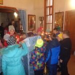 Ребята приложились к иконе, были помазаны освященным маслом из лампады, окроплены святой водой.