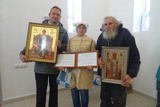 После Литургии благочестивые прихожане разместили на стенах храма привезенные ими из Италии и Греции иконы святителей Николая Мирликийского и Спиридона Тримифунтского, освященные на мощах святых.