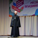 По окончании Литургии состоялся молебен перед чтимым образом Божией Матери «Казанская». По его заваершении иерей Антоний вознес молитву Пресвятой Богородице, поздравил всех с праздником. И обратил особое внимание на важность единства нашего народа, невзирая на национальность, языки и прочие внешние факторы и окропил всех святой водой.
