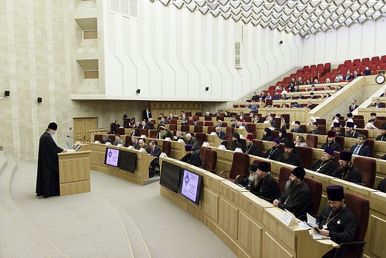 Владыка Тихон выступил с докладом «Нравственные ценности как основа народного единства», в котором подчеркнул, что духовным ориентиром для нашего народа всегда было и остается Православие, являющееся для России культурообразующей религией. Он подчеркнул, что без Православия наша страна не сможет устоять – это будет дом, построенный на песке. В частности, социализм имел грандиозные достижения, однако не устоял, потому что идеология советского общества имела даже не атеистическую, а богоборческую направленность, то есть отвергала духовно-нравственные ценности, которыми всегда жила Россия, отвергала тот могучий фундамент, на котором стояло и развивалось государство.