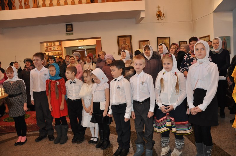По завершении праздничного богослужения учащиеся детской воскресной школы исполнили литературную композицию в честь 5-летнего юбилея Карасукской епархии.