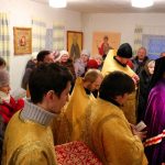 В завершение богослужения правящий архиерей отдельно поблагодарил диакона Евгения Румянцева, который в течение месяца активно готовил приход к его открытию: внутри храма были побелены стены, восстановлены 2-е печи, установлены иконостас, престол, жертвенник, приобретены облачения для храма и церковная утварь.
