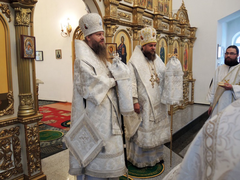 Его Преосвященство епископ Филипп возглавил праздничную Божественную литургию в Кафедральном соборе во имя св. апостола Андрея Первозванного. Ему сослужили Его Преосвященство Лука, епископ Искитимский и Черепановский, секретарь Епархиального управления Карасукской епархии Игорь Непша, благочинный Восточного округа Андрей Гусев, иерей Евгений Зверев, иерей Роман Венцак и иерей Михаил Прут.
