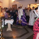 По окончании ночной Литургии после славления праздника Владыка окропил всех молящихся святой водой и поздравил со светлым и мироспасительным праздником Рождества Христова.