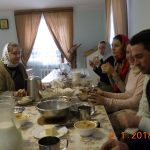 Батюшка рассказал об истории монастыря и о монашеской жизни. В трапезной было все настоящее. Когда хотели ложкой взять сметану, то ложка погнулась. Пришлось ее ножиком мазать на хлеб как масло! А хлеб попросили даже домой, угостить домашних.