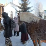 После трапезы, за которой нам показали героическую, по сути, фотоисторию монастыря, нас ждал Рождественский сюрприз! В санях, на таких как у Деда мороза, нас прокатили на огромном добром как из сказки коне — тяжеловозе.