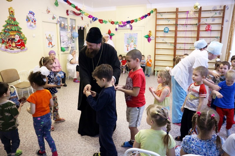 16 января епископ Филипп, протоиерей Александр Гришин и игумен Гурий посетили последний детский центр «Жемчужина», бывший детский дом №1, и поздравили детей-сирот с Рождеством Христовым.