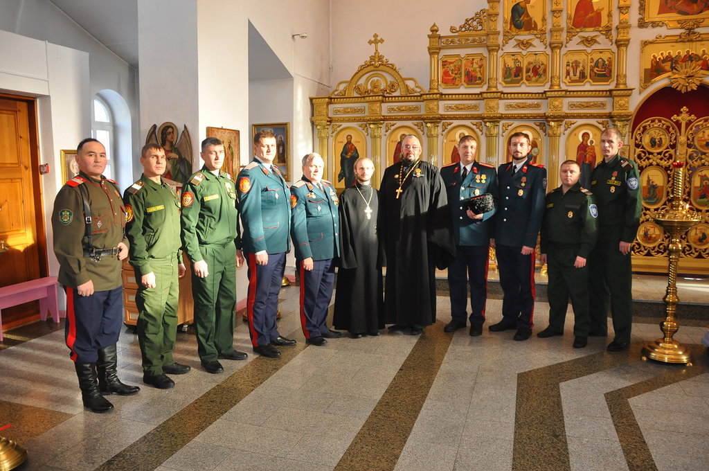 После молебна руководитель Отдела по взаимодействию с вооруженными силами, правоохранительными органами и казачеством Карасукской епархии протоиерей Илия Березовский сказал напутственные слова казакам-пограничникам, закончив свою речь словами: «Граница России священна и неприкосновенна!»