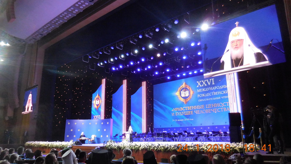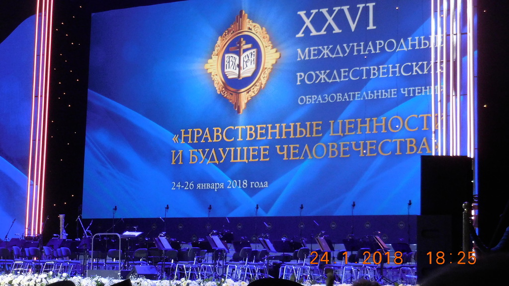 По благословению Его Преосвященства епископа Филиппа клирики Карасукской епархии: иеромонах Мелхиседек (Свистелин) и протоиерей Александр Лупарев приняли участие в XXVI Международных Рождественских образовательных чтениях «Нравственные ценности и будущее человечества», которые прошли с 24 по 26 января 2018 года в городе Москве. Они приняли участие в Божественной литургии в Храме Христа Спасителя и посетили следующие мероприятия Чтений: