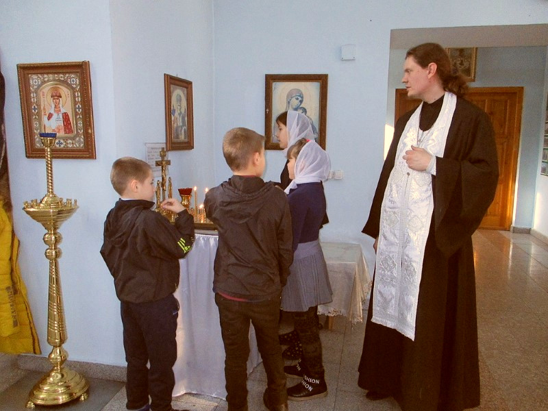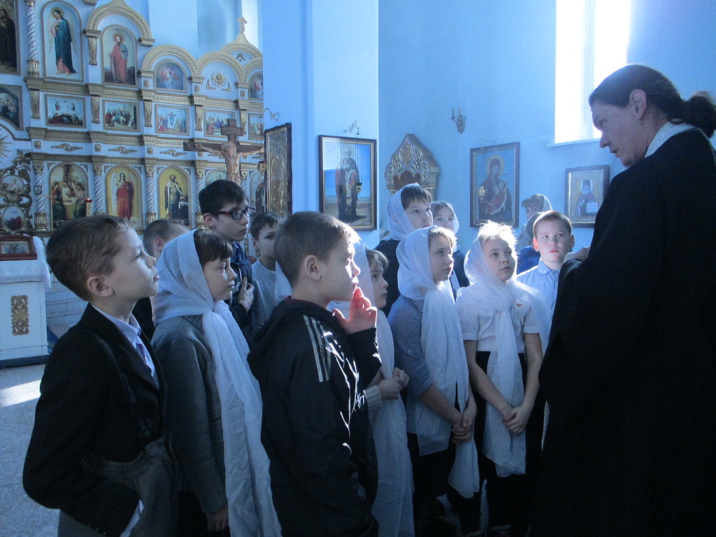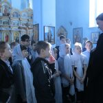 Настоятель собора иерей Константин Карамышев рассказал учащимся о назначении человека на земле, о вере, о любви друг к другу. Как обустроен храм, значение храма на земле. Рассказал об иконах, небесных покровителях, имена которых мы носим и которые являются нашими молитвенными защитниками, стоящими у престола Божия.