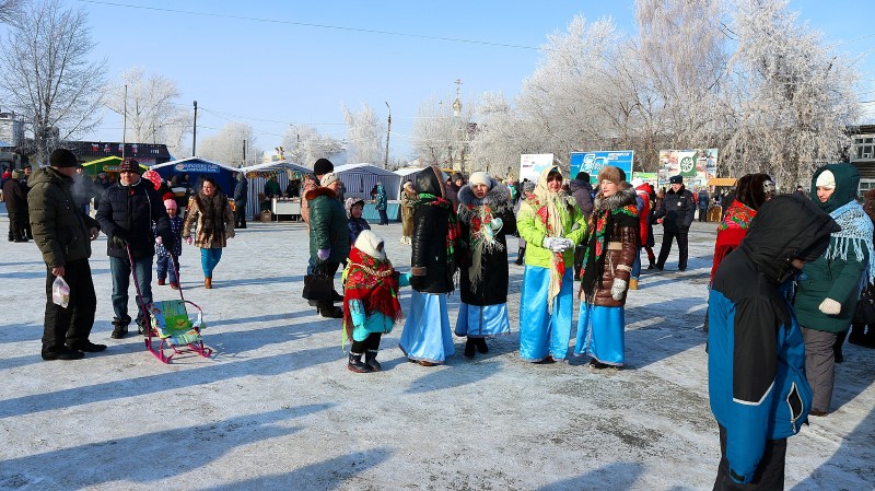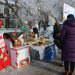 На городской площади расположилась большая ярмарка. Здесь, прямо под открытым небом, можно было отведать традиционные русские блины с душистым медом и горячим ароматным чаем из большого самовара, ими щедро угощали всех гостей ярмарки.