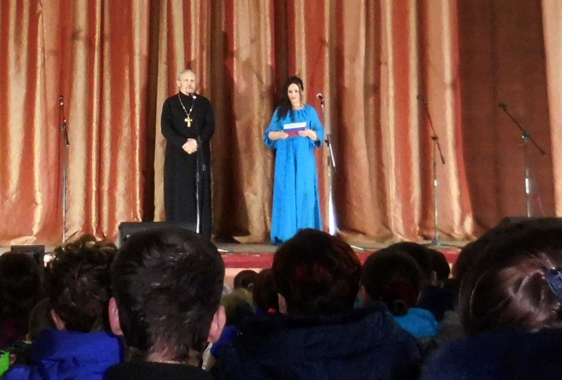 23 февраля протоиерей Александр Лупарев после утреннего богослужения и молебна Феодору Тирону поздравил присутствующих на праздничном концерте в честь Дня защитника Отечества, который прошел в местном Доме культуры.