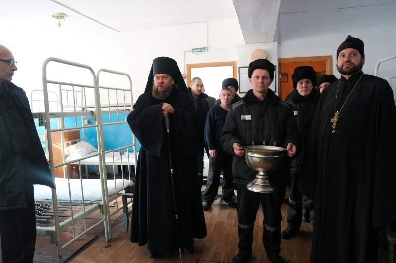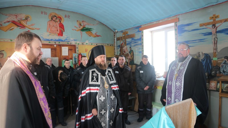 По окончании молебна Владыка обратился к заключенным со словом назидания и напомнил, что сейчас идет время Великого поста, установленного Православной Церковью, а для всех находящихся здесь — время поста в их жизни, т. к. находясь в заключении, каждый человек лишен всего: родителей, внимания, любви к нему жены и детей и свободы.