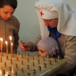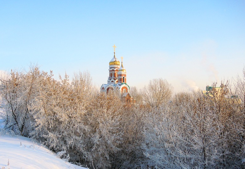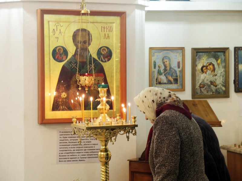 Несмотря на мороз, около 45 градусов ниже нуля, за Божественной литургией было много прихожан, представители администрации и многочисленные гости.
