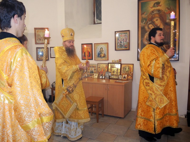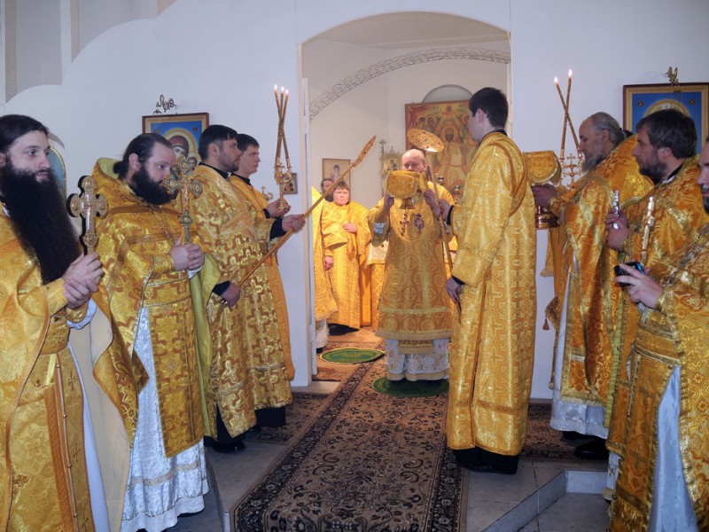 18 декабря/вторник 2012г. Несмотря на сильнейшие морозы, 45 градусов ниже нуля, и на огромное расстояние до 400 км, накануне дня свт. Николая, архиепископа Мир Ликийских, Чудотворца Его Преосвященство епископ Филипп и епископ Феодосий по приглашению Его Преосвященства епископа Луки прибыли из своих епархий на престольный праздник Кафедрального собора во имя святителя Николая г. Искитима.
