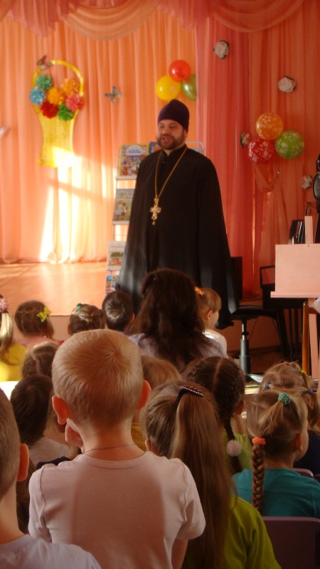 Затем мероприятие, посвященное Дню православной книги, прошло в детском саде «Солнышко» г. Купино. В мероприятии принял участие иеромонах Мелхиседек. Он рассказал детям о значении книги и о книгопечатании.