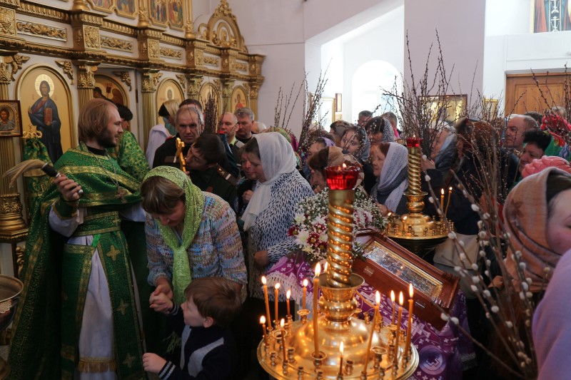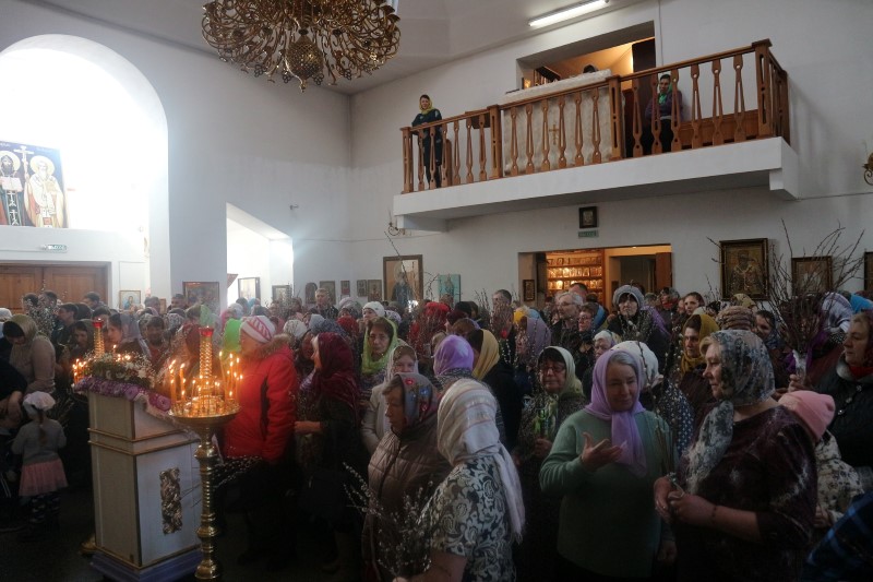 По окончании Литургии состоялось славление праздника и освящение верб.