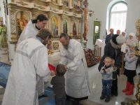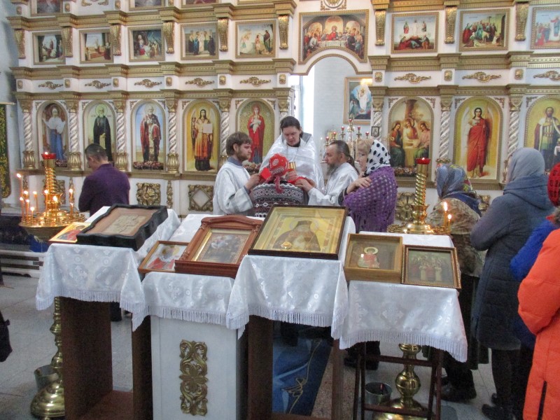 Затем был отслужен краткий молебен перед иконами святых с частичками мощей, которые доставлены в собор крестным ходом, проходящим по благословлению правящего архиерея владыки Филиппа с 30 марта по 4 апреля в Ордынском районе и ставшим уже доброй традицией в нашей Карасукской и Ордынской епархии.