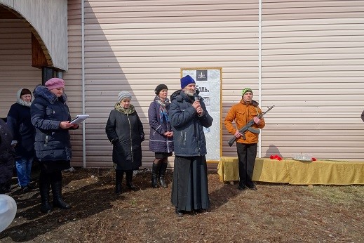 На митинг после совершения заупокойной литии в Никольском храме р. п. Ордынское прибыл благочинный Восточного округа иерей Николай Иванов.