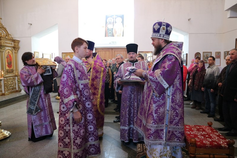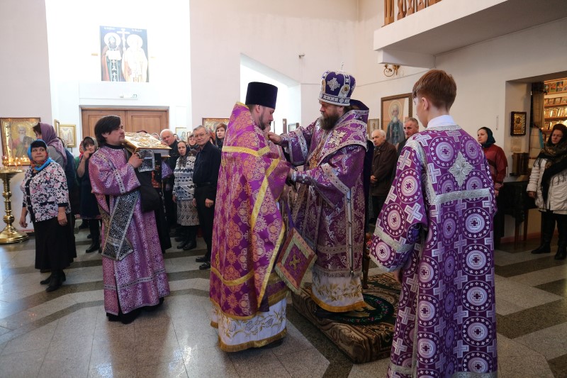 На малом входе с Евангелием епископ Филипп вручил Патриаршую награду — право ношения палицы — иерею Роману Венцаку.