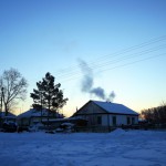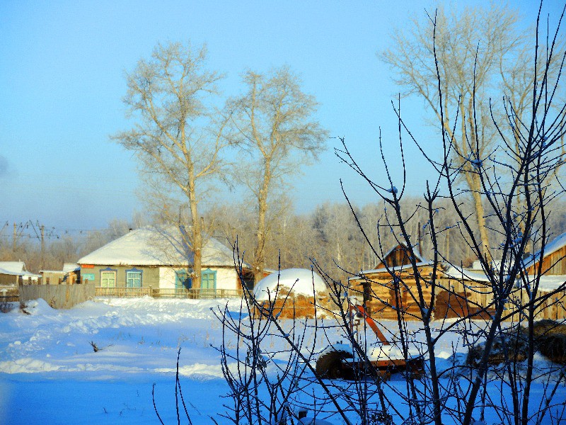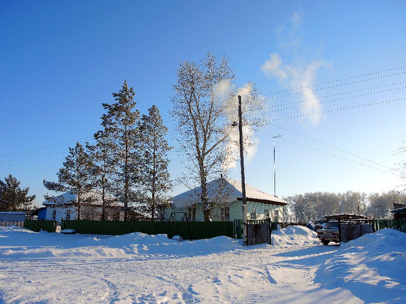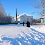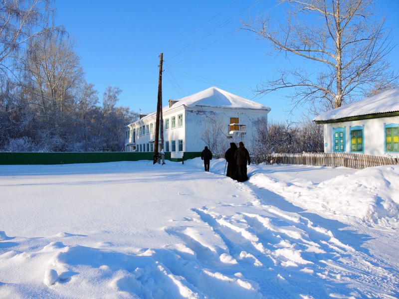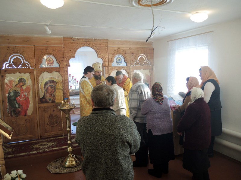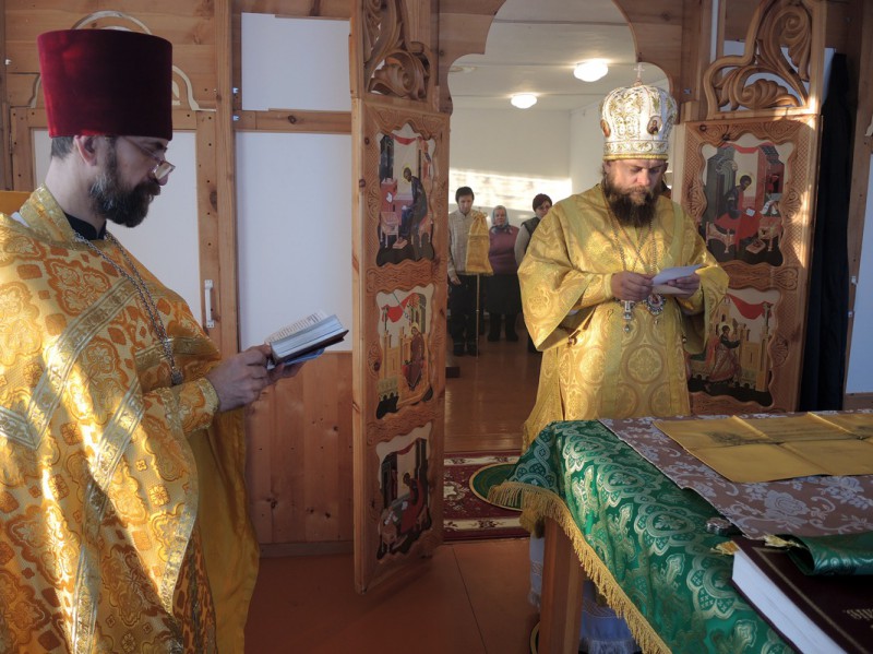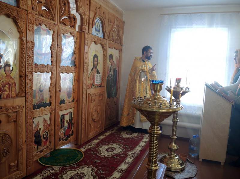 Недавно поставили иконостас, престол, жертвенник, и сегодня по милости Божией в этом далёком посёлке, в 350 км от Новосибирска, была совершена первая Божественная литургия.