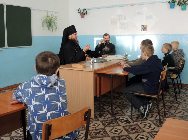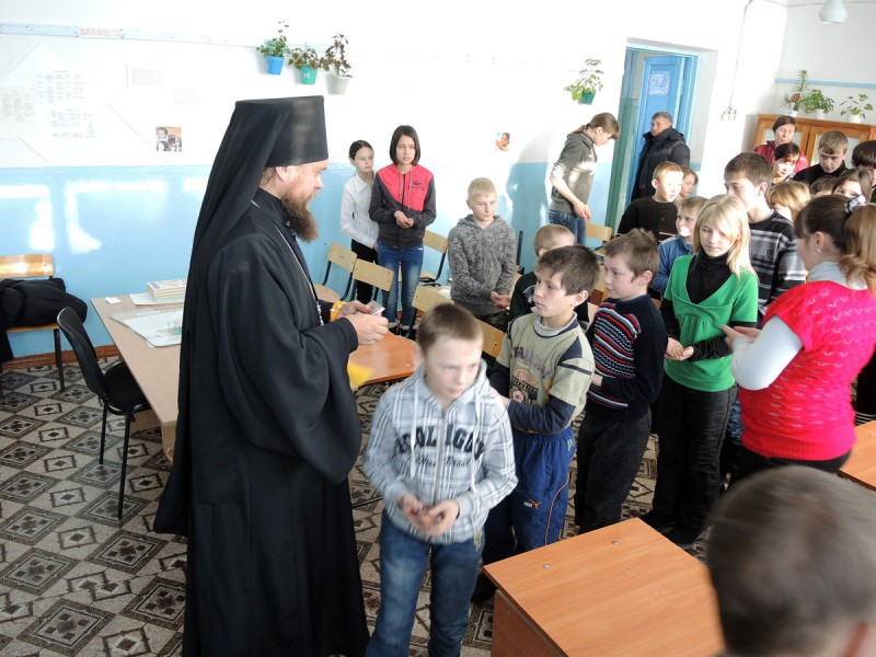 В этот же день Владыка Филипп встретился в местной школе со школьниками. Владыка рассказал об основах православной веры, о том, как нужно креститься, брать благословение у батюшки, для чего нужно носить всем нательный крест и ходить в храм Божий.