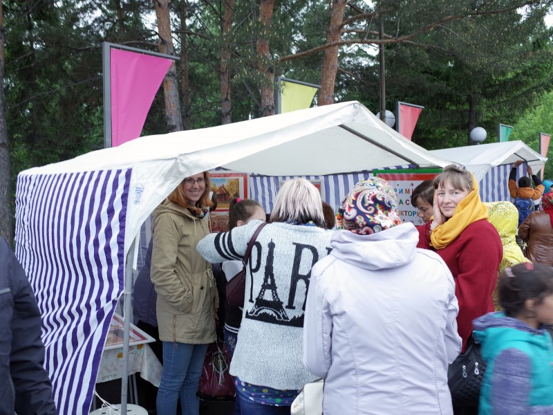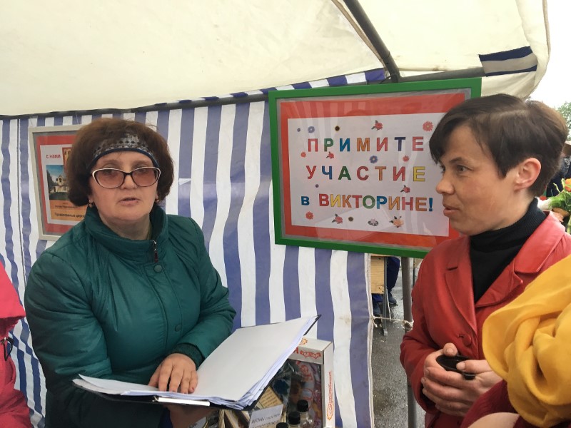 Позже приход принял участие в народном гулянии: была установлена специальная палатка на центральной площади поселка, в которой организована выставка истории православия в нашем районе, размещены предметы церковной утвари, проведены познавательные викторины и конкурсы.