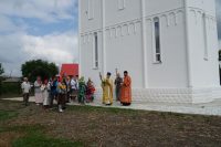 После праздничного молебна святому равноапостольному князю Владимиру прихожане во главе с батюшкой совершили крестный ход вокруг храма.