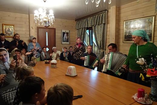После праздничной Литургии, на которой было много причастников, и после славления и молебна покровителю храма святителю Николаю Чудотворцу в Духовно-просветительском центре состоялся концерт фольклорной песни. Затем дети участвовали в разнообразных играх.