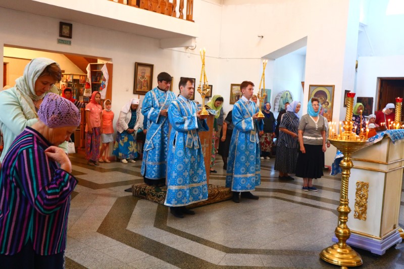 5 августа/воскресение в день празднования Почаевской иконы Божией Матери Его Преосвященство епископ Филипп возглавил Божественную Литургию в Кафедральном соборе св. апостола Андрея Первозванного г. Карасука, ему сослужили секретарь Карасукской епархии иерей Антоний Баранов и иеромонах Мефодий (Андреев).