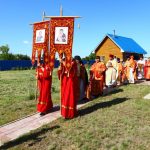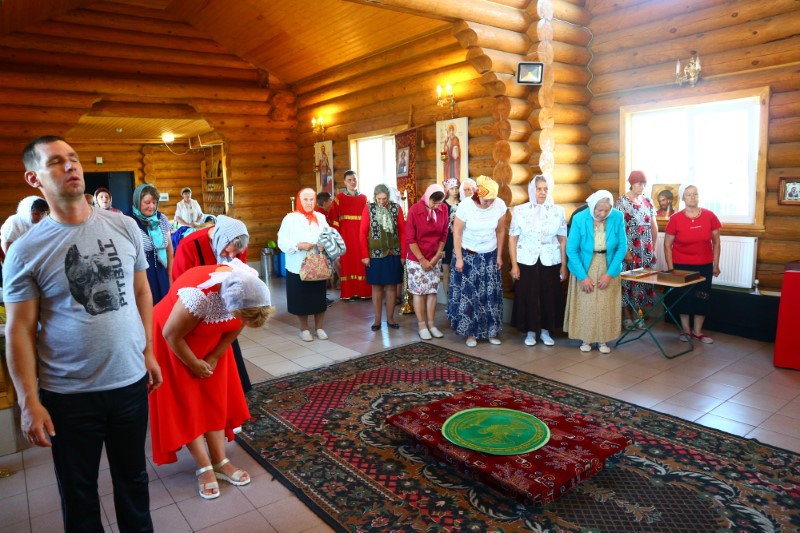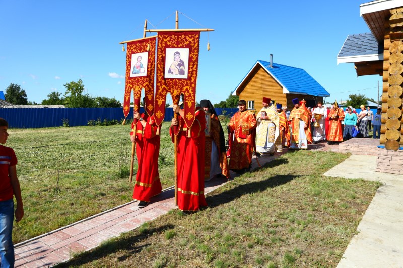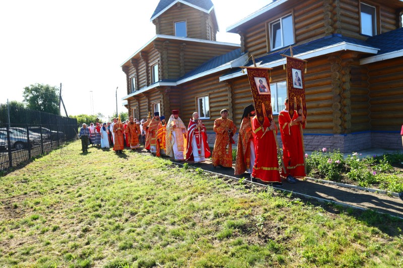 По окончании Литургии состоялся праздничный молебен мчч. блгвв. кнн. Борису и Глебу и под колокольный звон прошел крестный ход с хоругвиями и песнопениями вокруг храма.