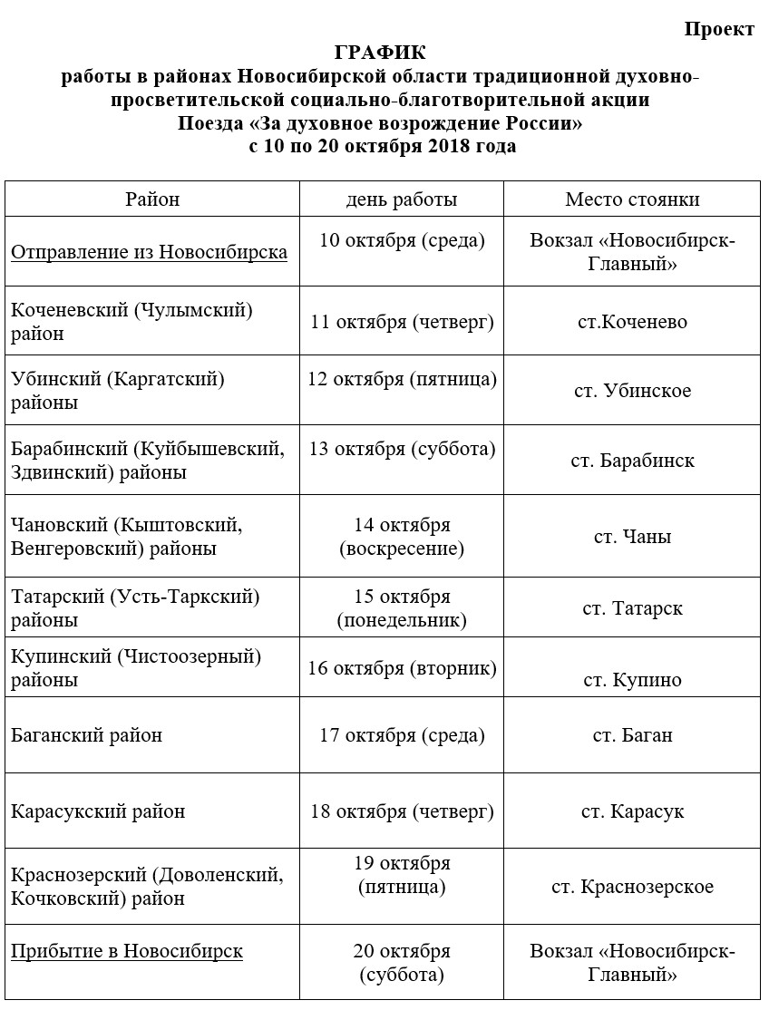 С 10 по 20 октября 2018 г. в Новосибирской области пройдет традиционная духовно-просветительская и социально-благотворительная акция Поезда «За духовное возрождение России».
