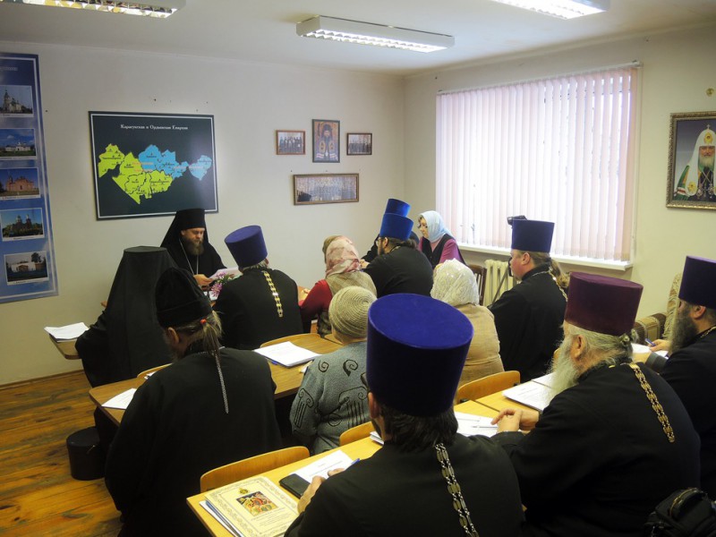 На епархиальном собрании выступил секретарь Карасукской епархии иерей Игорь Непша. В своём слове он напомнил священнослужителям о правильном ведении документации в храмах, о подготовке годовых отчётов и отчётов епархиальных отделов. На собрании выступила главный бухгалтер Епархиального управления Валентина Анатольевна. Она рассказала о финансовой ситуации епархии, о средствах, затраченных в течение года на ремонт и строительство храмов и Епархиального управления. Она также отметила, что проведена проверка двух храмов епархии.