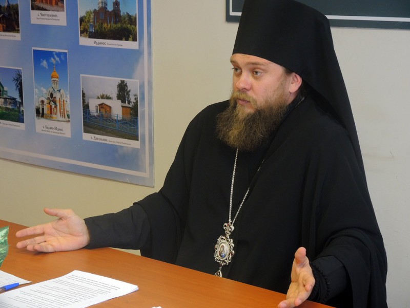 В своём докладе он осветил главные моменты деятельности епархии за текущий год. Так он рассказал о создании епархии, о её работе за этот период, о встрече Корабля-Церкви «Святой апостол Андрей Первозванный» в Ордынском районе, о встрече Поезда Памяти «За духовное возрождение России» и о совместной миссионерской работе с ним. Он напомнил всем собравшимся о праздновании Карасукской епархией двух славных юбилеях этого года, Года российской истории: 200-летия победы в Отечественной войне 1812 года и 400-летия преодоления Смуты 1612года.