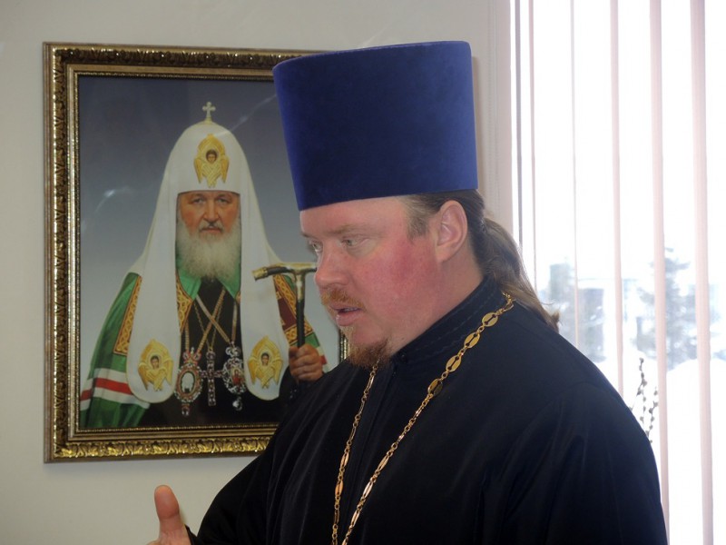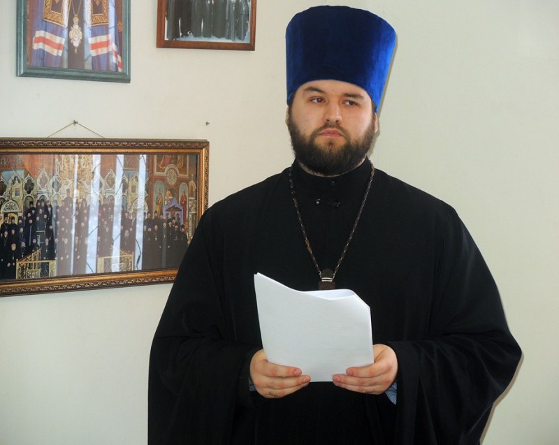 Далее выступил благочинный Восточного благочиния Карасукской епархии и начальник миссионерского отдела иерей Андрей Гусев. Он рассказал о работе благочиния и о работе миссионерского отдела Карасукской епархии.
