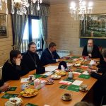 В здании Духовно-просветительского центра Карасукской епархии иерей Александр Сахненко, руководитель Епархиального отдела по взаимоотношениям Церкви и общества, сопровождавший митрополита Тихона в поездке в Карасукскую епархию, провел встречу с представителями Ордынского местного отделения Всемирного Русского Народного Собора.