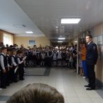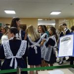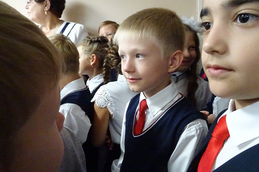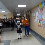 Дождливая погода не позволила провести линейку на площадке перед школой, поэтому торжество проходило в актовом зале.