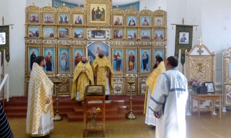 По ее окончании иерей Антоний Баранов передал слова поздравления в адрес настоятеля храма и прихожан с престольным праздником от правящего архиерея епископа Филиппа с пожеланием мира, здравия и Божьего благословения..