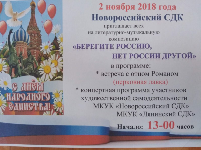 2 ноября в Новороссийском СДК Здвинского района прошло мероприятие, посвященное Дню народного единства.