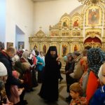 В приветственном слове по окончании Литургии Владыка поздравил всех с воскресным днем и напомнил, что в сегодняшнем евангельском чтении говорилось об исцелении Иисусом Христом скорченной женщины, которая в таком уродливом состоянии находилась 18 лет: она не могла выпрямиться во весь рост и увидеть небо. Но она не возроптала на Бога, не озлобилась, а все эти годы хранила в сердце своем святую веру и надежду на благость Божию: ревностно посещала дом Господень, тихо молилась, старалась быть как можно незаметнее, стоя в дальнем углу синагоги, где на нее никто не обращал внимания.