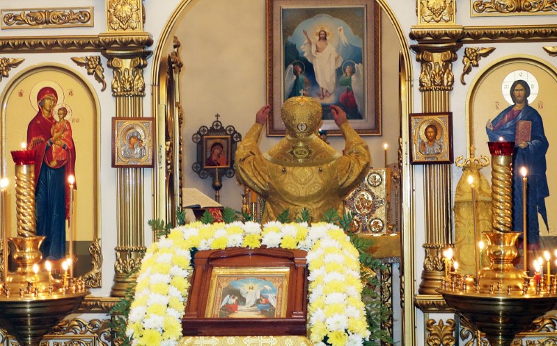 В святительском слове по окончании Литургии Владыка поздравил всех с воскресным днем и напомнил, что в сегодняшнем Евангелии говорилось о богатом юноше, которому Господь, отвечая на его вопрос о спасении, сказал, что для того чтобы иметь жизнь вечную, ему нужно продать свое имение нищим и пойти вслед за Господом. Сказал это потому, что видел в нем страсть сребролюбия. Но, как мы знаем, юноша отошел от него с печалью. В этой притче Господь показывает нам, что спастись и иметь жизнь вечную можно только тогда, когда мы избавимся от наших страстей: сребролюбия, гордыни, чревоугодия и прочих грехов. А чтобы избавиться от них, мы должны развивать в себе добродетели, противоположные этим страстям, так чтобы избавиться от гордыни, нужно развивать в себе смирение, от чревоугодия — воздержание и т. д. Архипастырь пожелал, чтобы Господь помог нам в этом духовном совершенствовании.