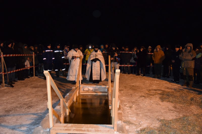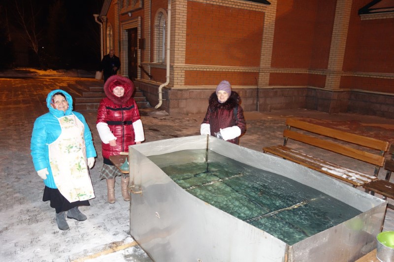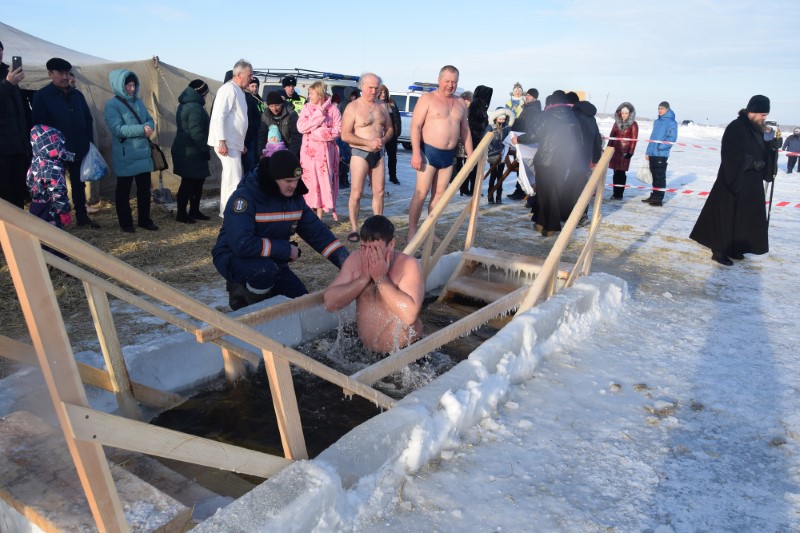 После проповеди Владыки все прихожане смогли набрать крещенскую воду. А в 11.00 состоялась поездка в село Благодатное на озеро для купания в крещенской купели.
