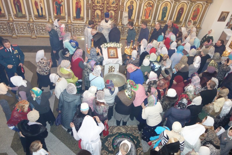 По окончании Литургии состоялось Великое освящение воды, после чего Владыка окропил всех прихожан святой водой и поздравил с праздником Крещения Господня.