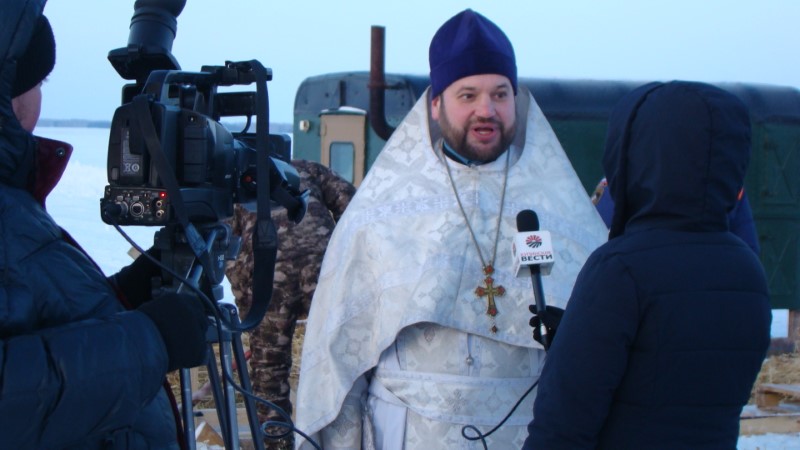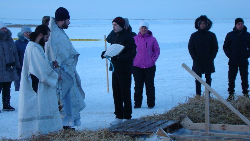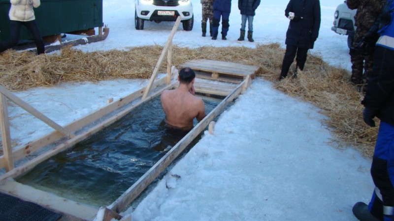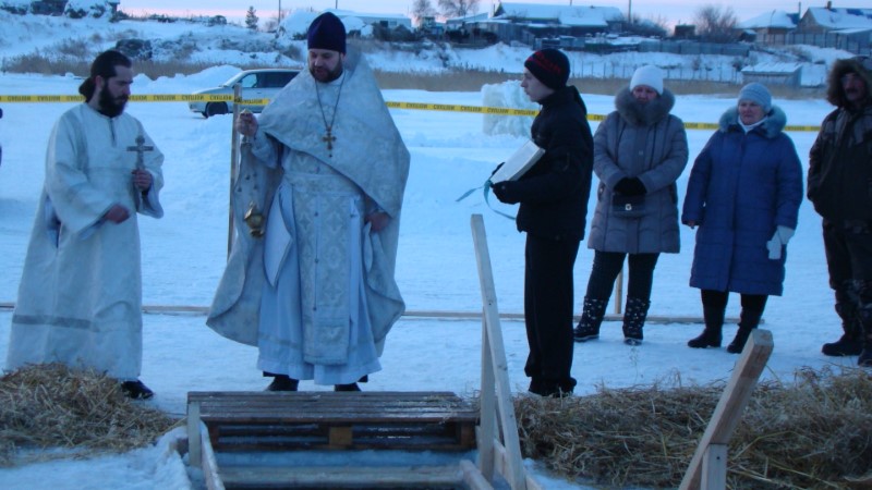 В 10.00 по традиции совершено Великое освящение воды в проруби в деревне Мальково, на озере Яркуль.