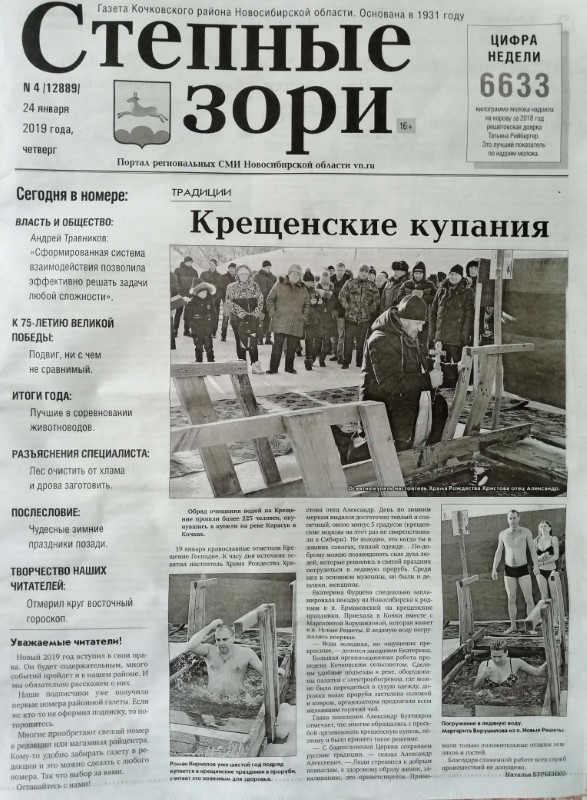 Крещенские купания показали по местному телевидению, отобразили в газете.