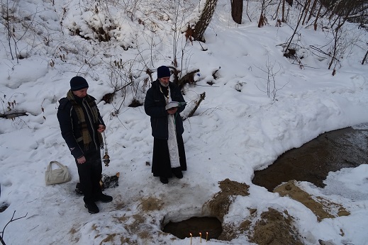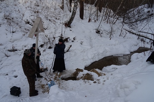 Затем был отслужен водосвятный молебен и совершено Великое освящение воды. Летом планируется провести благоустройство родника и прилегающей территории.