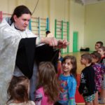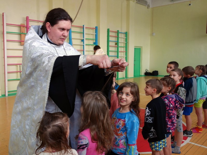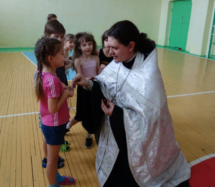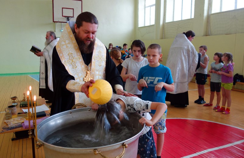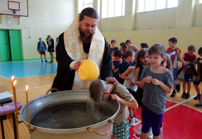 Почти каждый год в этой школе с разрешения родителей проводится Таинство Крещения, поскольку многие из ее воспитанников живут в Новосибирской области в деревнях, во многих из которых нет храмов.