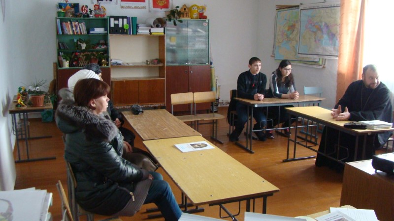 По окончании собраний в школах иеромонах Мелхиседек проводил беседы с учащимися.
