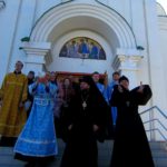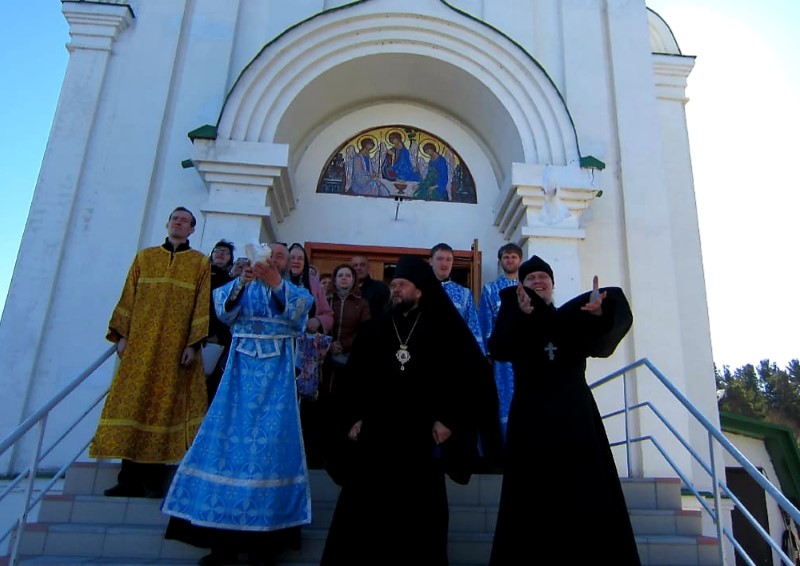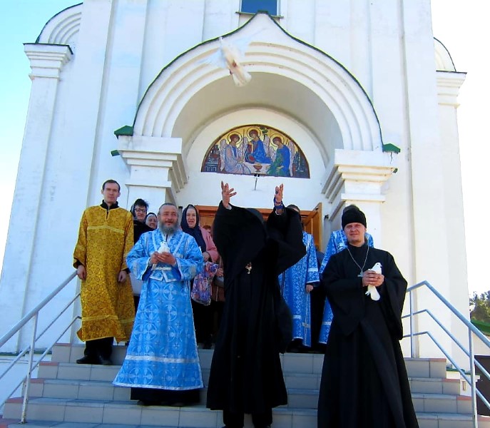 И по доброй традиции в этот праздничный день с паперти собора Владыка вместе с прихожанами выпустил в голубое небо белых голубей.
